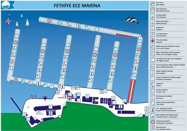 Des Weiteren bietet Ihnen die Ece Saray Marina ein Hotel internationalen Standards, einen Yacht Club mit herrlichem Pool sowie zahlreiche Bars und Restaurants, die einzigartige Köstlichkeiten der türkischen und internationalen Küche servieren.